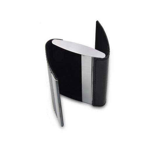 | אינווסט - מארז כרטיסי ביקור ממתכת בכריכת דמוי עם פתיחה דו כיוונית כפולה |
