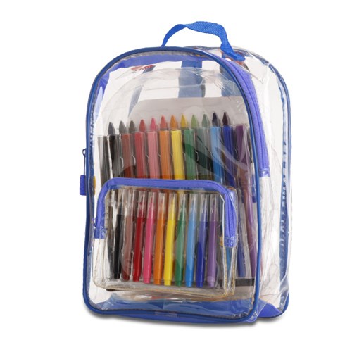 מיגוון - תיק גב לילדים מPVC שקוף כולל טושים, עפרונות, צבעי פנדה וחוברת צביעה