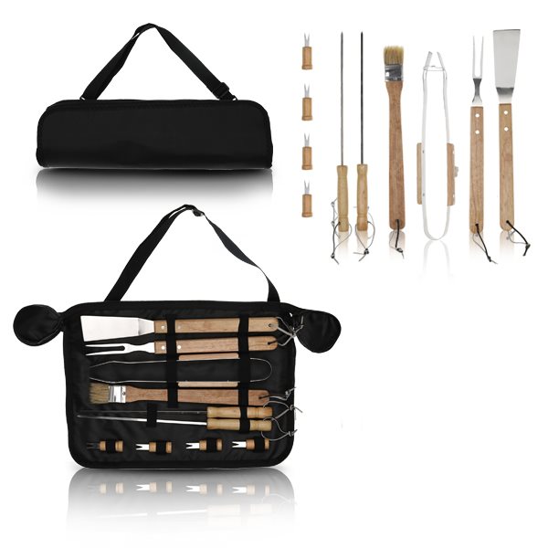 טי-בון - סט BBQ ידיות עץ בנרתיק דמוי עור נפתח