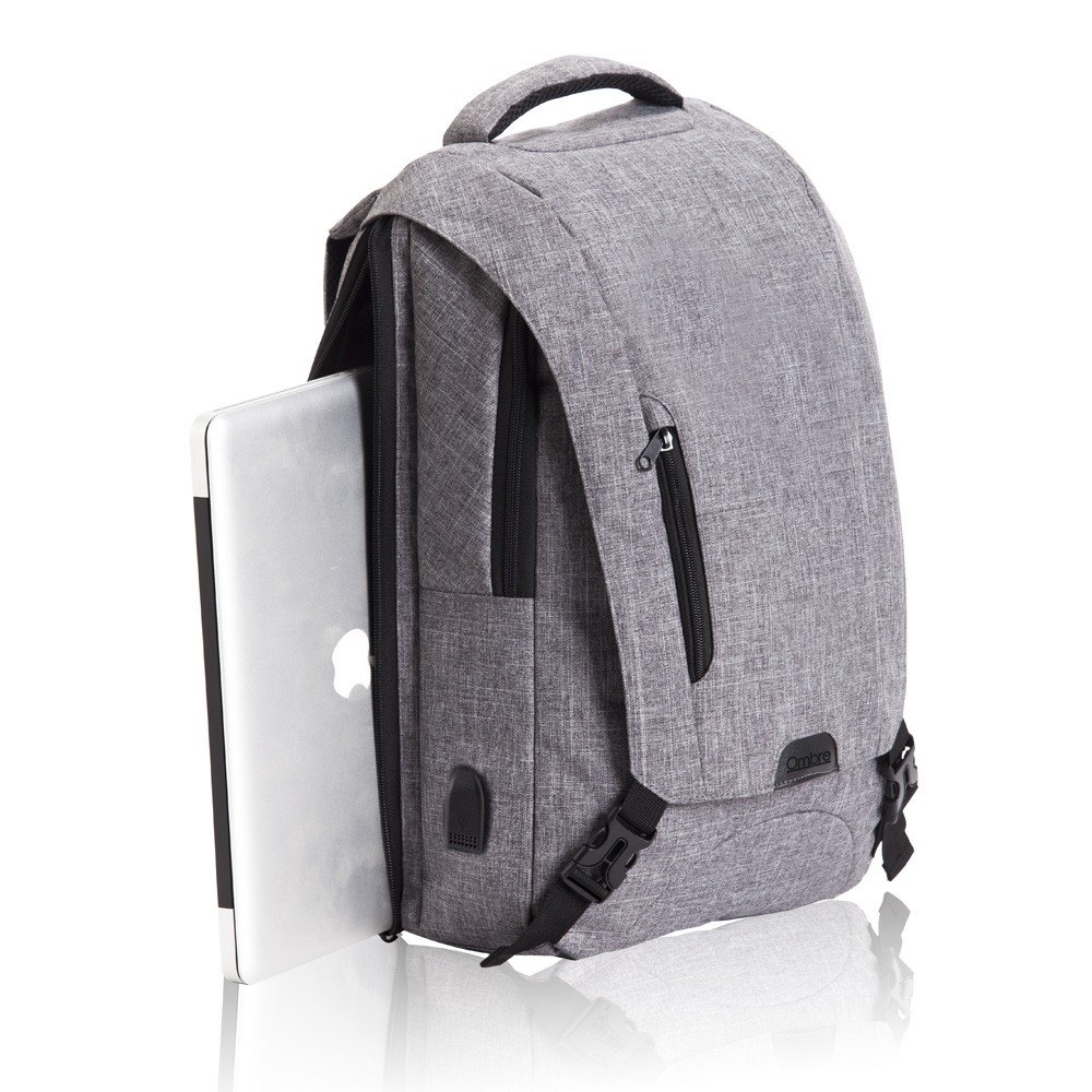 | LEON- תיק גב חכם למחשב מבית מותג האופנה אומברה עשוי בד מלאנג' וכולל יציאת USB |