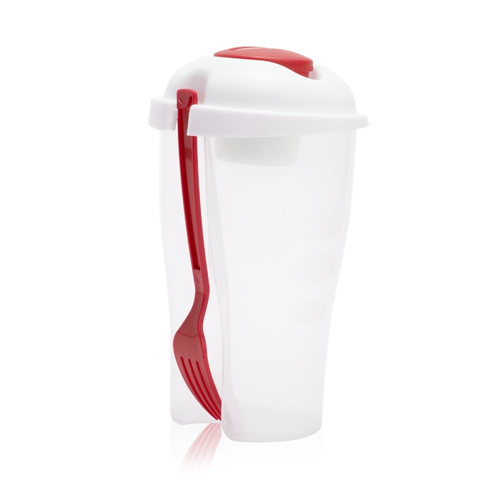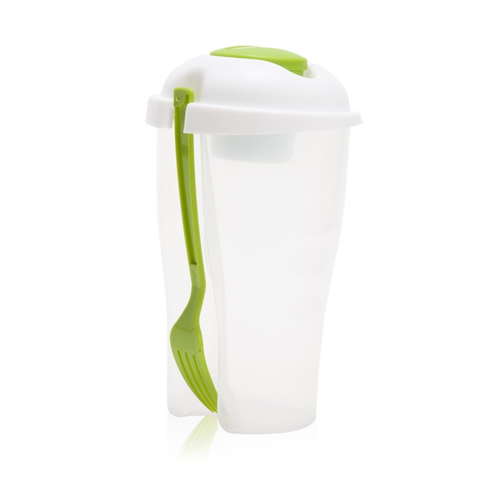 כוס לסלט עם מזלג וקופסא נפרדת לרוטב