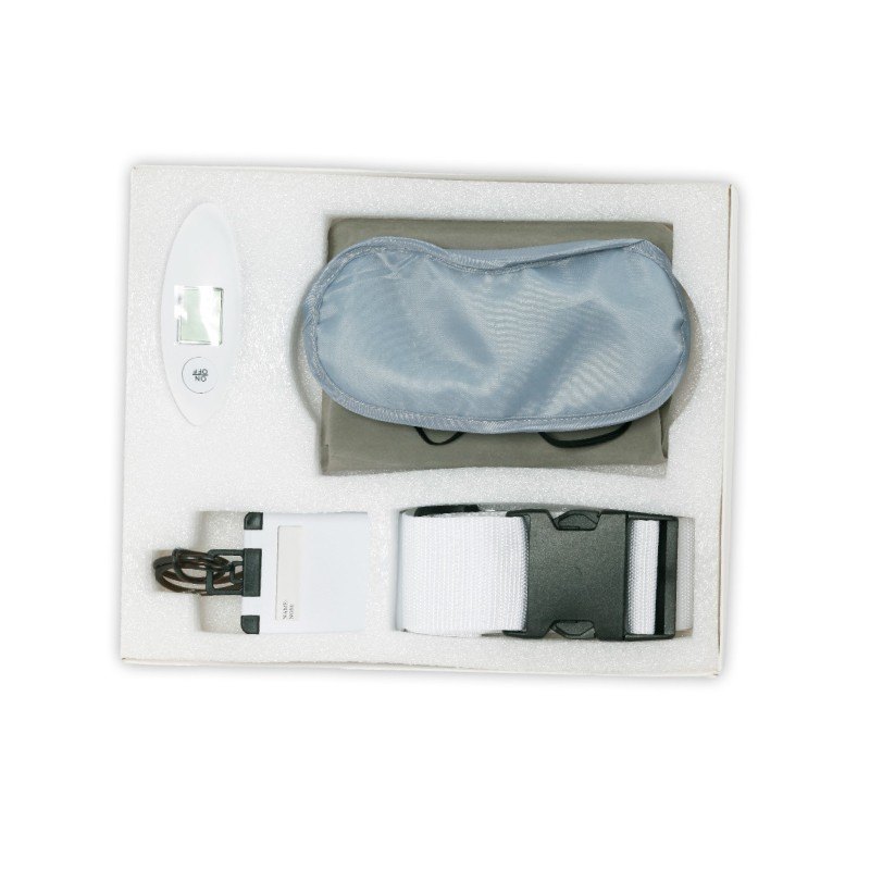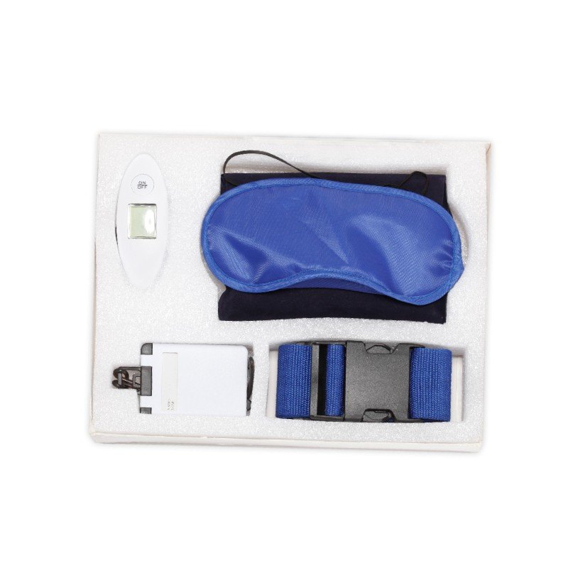 | מולטי -סט טיסה מושלם הכולל צשקל למזוודה, כרית טיסה מתנפחת, כיסוי עיניים, רצועה למזוודה ותג מזוודה בקופסא |