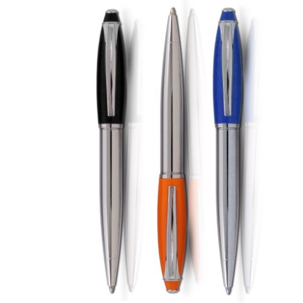 עט מתכת מפואר בשילובי צבעים מיוחדים עם מילוי כדורי ופתיחה בסיבוב
