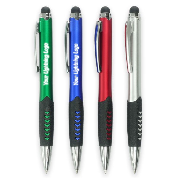 עט טאץ כדורי עם תאורת לד פנימית, הלוגו מאיר בלחיצת כפתור