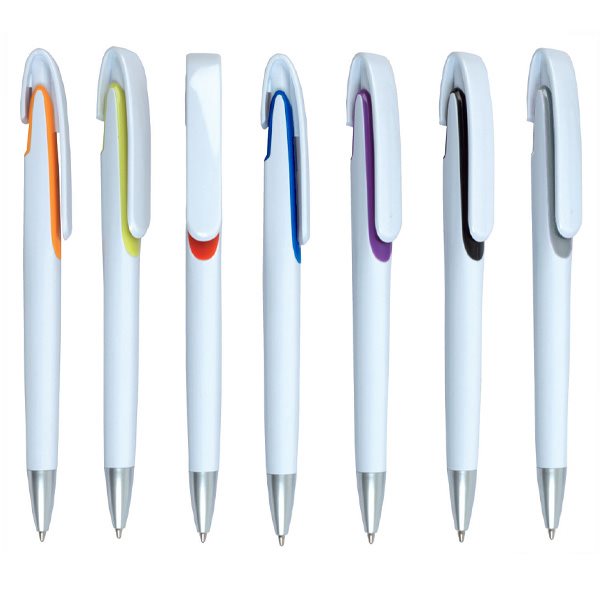 עט כדורי צבעוני פלסטי עם שטח פרסום גדול על הקליפס