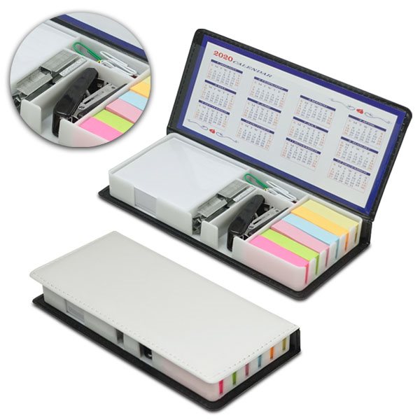 מולטיבוקס מעמד ניירות משרדי דמוי עור עם דבקיות, שדכן, סיכות לשדכן, מהדקים, דפי ממו ותאריכון