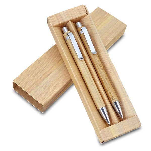 סט במבוק - עט + עיפרון מכני עשוים עץ במבוק