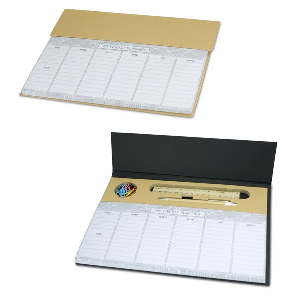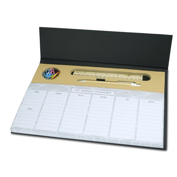 וויקלי - לוח תכנון שבועי נתלש עם עט סרגל וסיכות