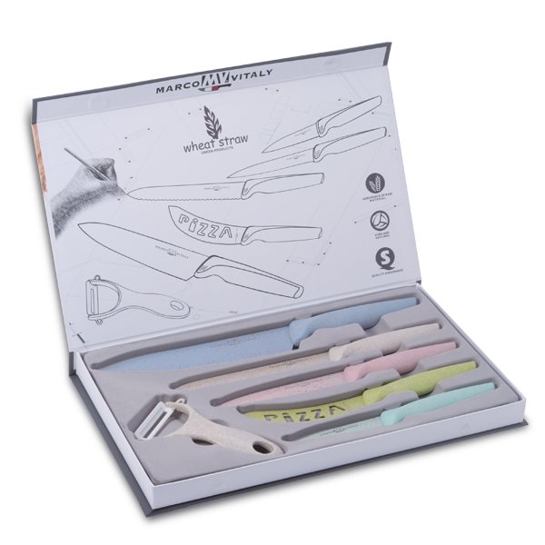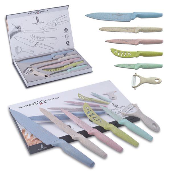 גרצייה - סט 6 סכינים צבעוניים עם ציפוי דמוי שיש