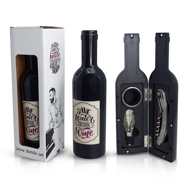 ווינו - סט יין בבקבוק נפתח הכולל 3 חלקים ממתכת
