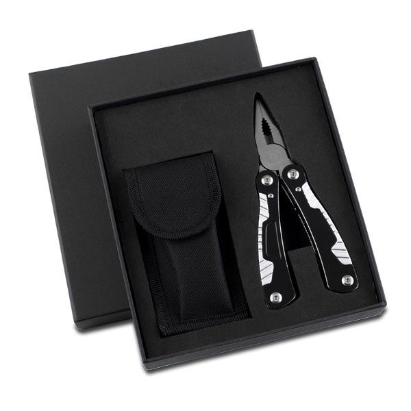כלי רב שימושי עם 12 פונקציות כולל נרתיק בד, ארוז באריזת מתנה שחורה