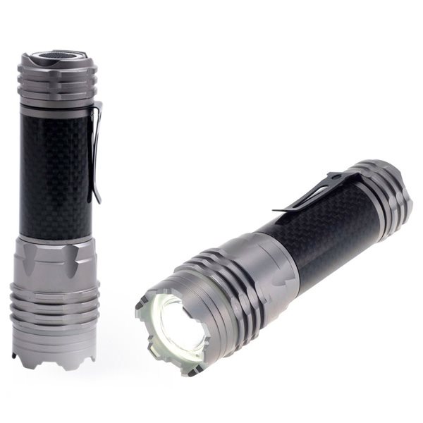 פנס מקוצעי מתכתי נורת CREE עוצמתית עם מגוון מצבי תאורה משתנים בגימור קרבון