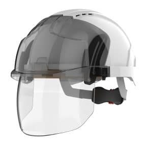 מגן הפנים בעל חוזק מכאני הגבוה ביותר -רמה A- מפני פגיעות של חלקיקים ושבבים העפים במהירות של 190 מ/ש וכן בעל ציפוי נגד אדים ושריטות. קל ונוח לשליפה ואחסנה בקסדה. ניתן לשלב מוצרים נוספים כגון משקפי מגן /מסכת חצי פנים/נשמיות/אוזניות מגן. קסדה עשויה פלסטיק ABS עמיד לחבטות וזעזועים, כולל ראצ’ט לכוונון והתאמה נוחים,6 נק עיגון. מגן פנים פוליקרבונט/99.9UV קסדה ABS